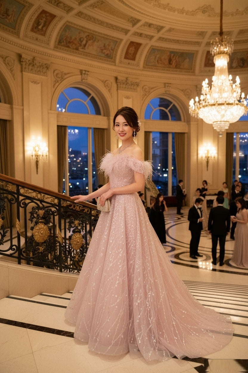 アルカドレスは、職人が一点一点真心を込めて丁寧に制作いたします。その想いは素材選びから縫製、装飾まで、すべての工程に宿ります。世界に一つだけの特別な一着を、ぜひご自身の目で、肌で感じてください。また、追加料金1,500円で、丈の長さ・胸囲・ウエストなど、お客様のサイズに合わせたオーダーメイドも承っております。