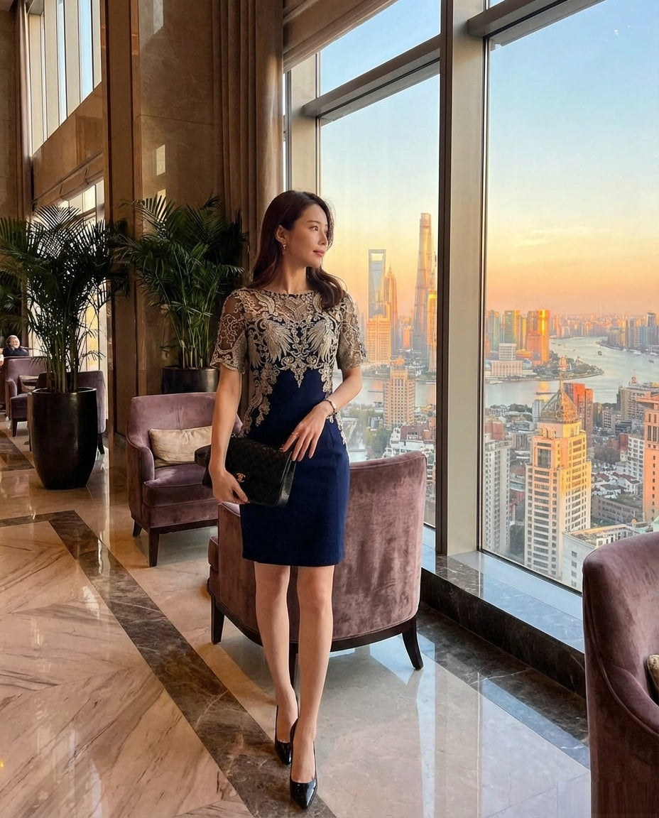 capsicum (着丈 サイズオーダー可能) パーティードレス タイトドレス オーダーメイド 高級ドレス ブラックドレス ネイビードレス ビジュードレス レースドレス ノースリーブドレス ミニドレス フォーマルドレス カクテルドレス 結婚式 二次会 食事会 レストラン ホテルラウンジ 高層階 夕景 夜景ライティング 気品 透明感 大人の余裕 日本人女性 美脚シルエット 特別な夜 主役級存在感 (ネイビー)