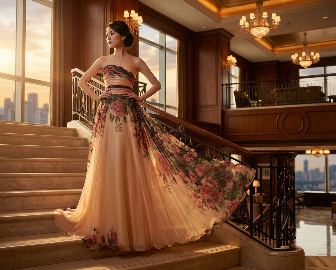 アルカドレスは、職人が一点一点真心を込めて丁寧に制作いたします。その想いは素材選びから縫製、装飾まで、すべての工程に宿ります。世界に一つだけの特別な一着を、ぜひご自身の目で、肌で感じてください。また、追加料金1,500円で、丈の長さ・胸囲・ウエストなど、お客様のサイズに合わせたオーダーメイドも承っております。
