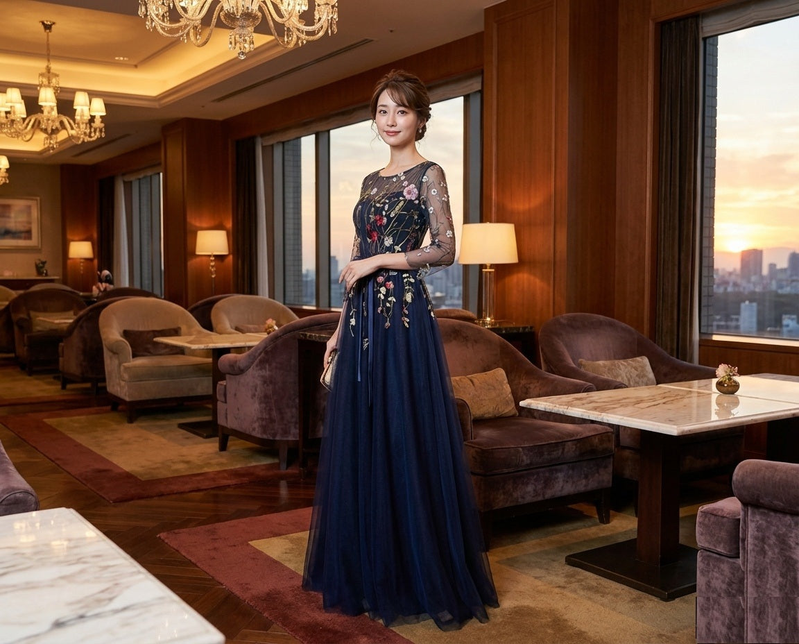 アルカドレスは、職人が一点一点真心を込めて丁寧に制作いたします。その想いは素材選びから縫製、装飾まで、すべての工程に宿ります。世界に一つだけの特別な一着を、ぜひご自身の目で、肌で感じてください。また、追加料金1,500円で、丈の長さ・胸囲・ウエストなど、お客様のサイズに合わせたオーダーメイドも承っております。