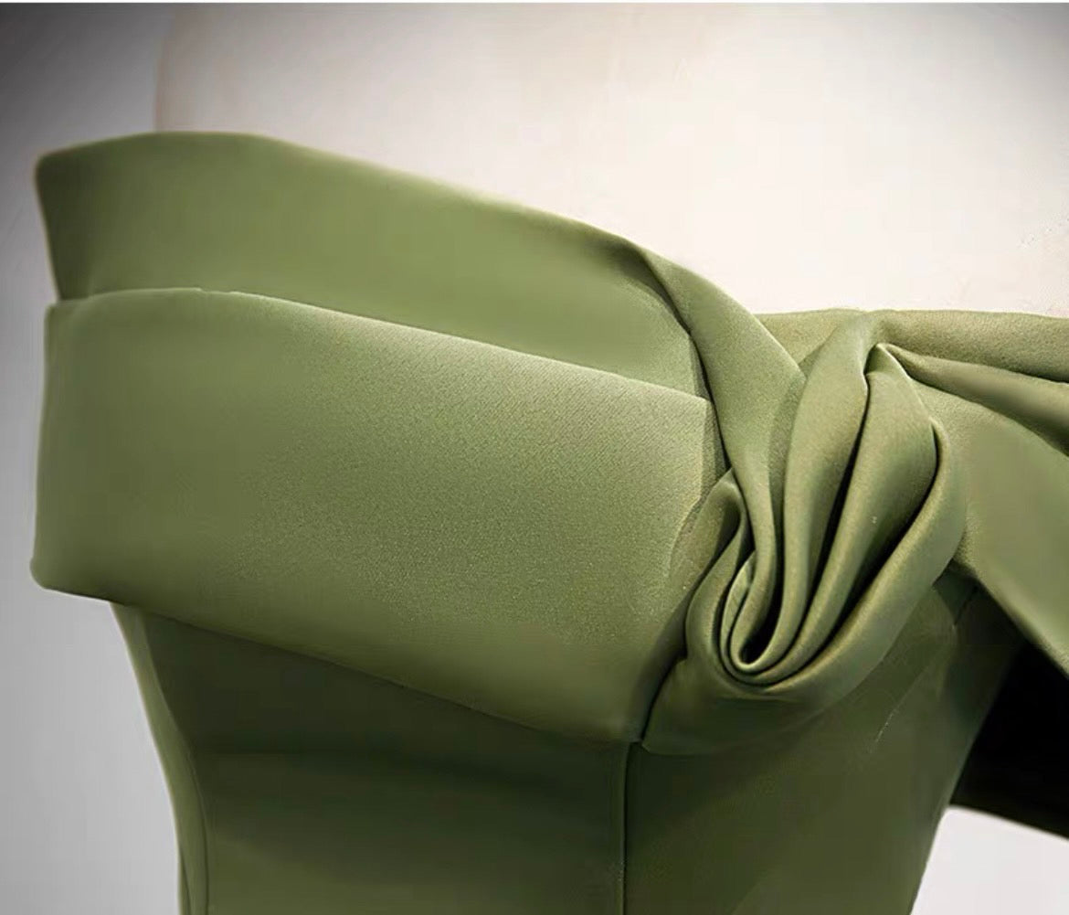 ドレスに直接触れないよう気をつけながら、スチームがシワの奥まで届くように噴射します。ドレス内側は、アイロンを上下から入れて筒状にして全体にスチームを送り馴染ませます。ドレスの両端をぴっと引っぱると、根元からシワがなくなりふんわり立ち上がります。