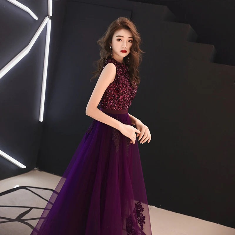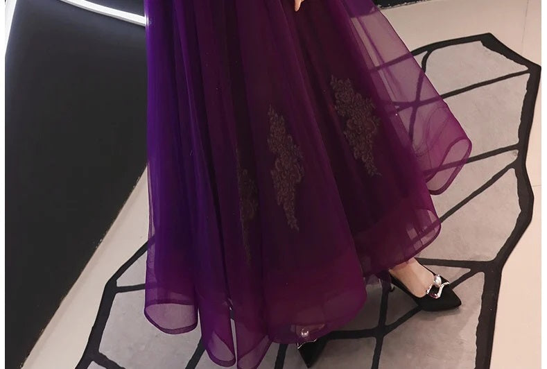即納ドレス あす楽 a1401 ロングドレス パープル大人イブニングドレス カラードレス ブライズメイド Aラインドレス ステージドレス お急ぎ 演奏会 大きいサイズ 結婚式二次会 お呼ばれ 結婚式 発表会 ロング丈 即日発送 上品