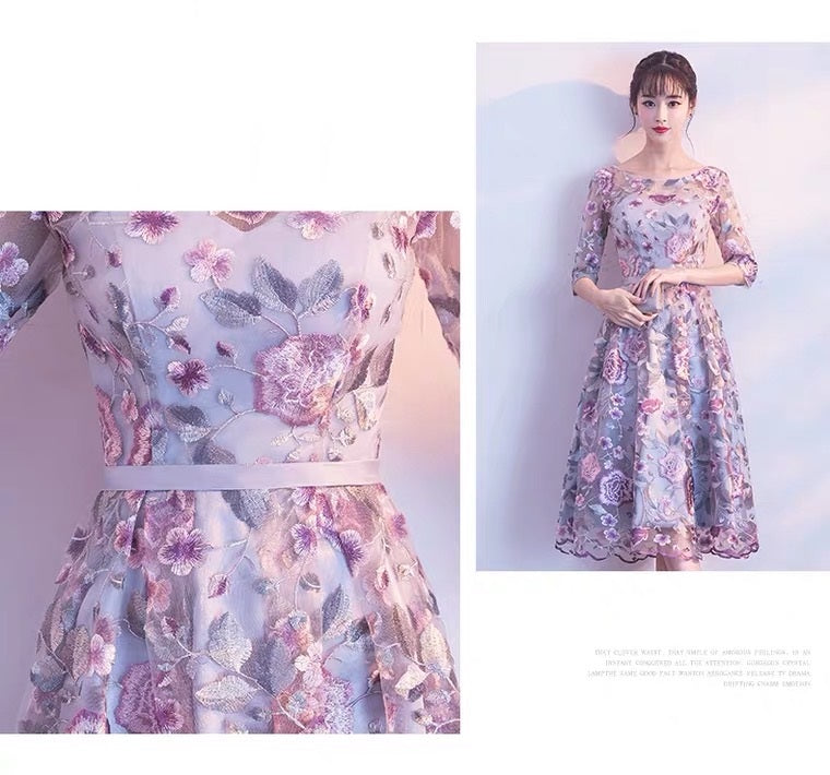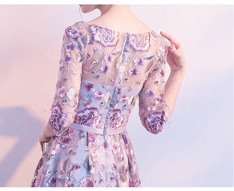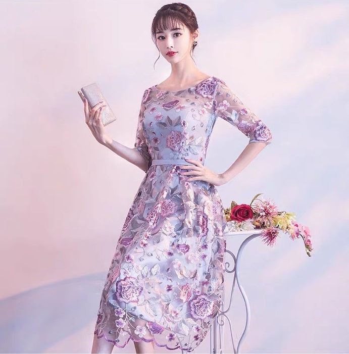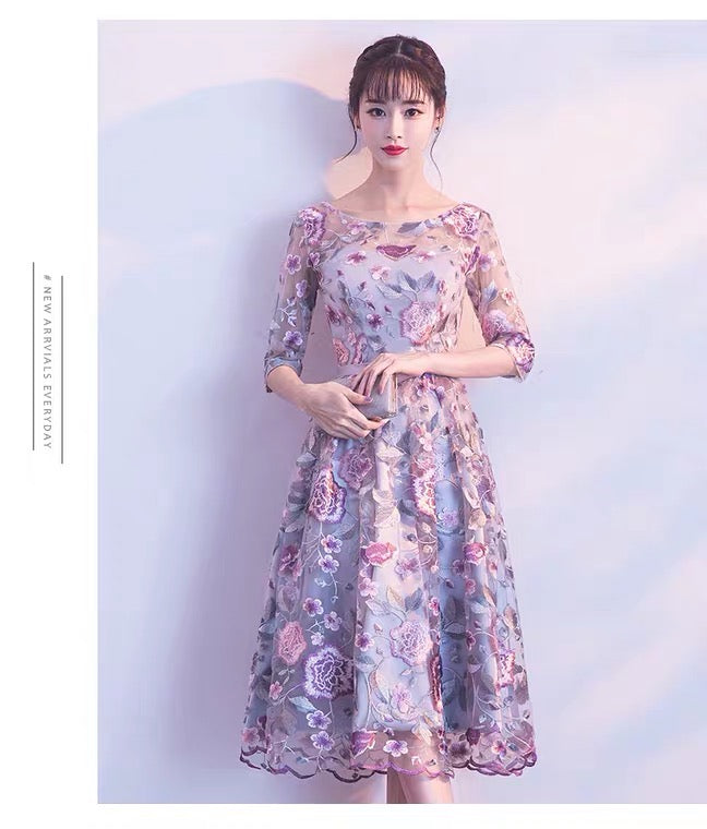 aaron ミディアムドレス パープル S M L XL XXL 即日発送 即納 結婚式 パーティードレス 体型カバー 小柄 ゆったり マタニティ ブラジャー 20代 30代 40代 50代 ブランド ワンピース シャンパン 夏 持ち運び