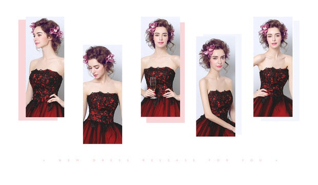 ドレスの両端をぴっと引っぱると、根元からシワがなくなりふんわり立ち上がります。