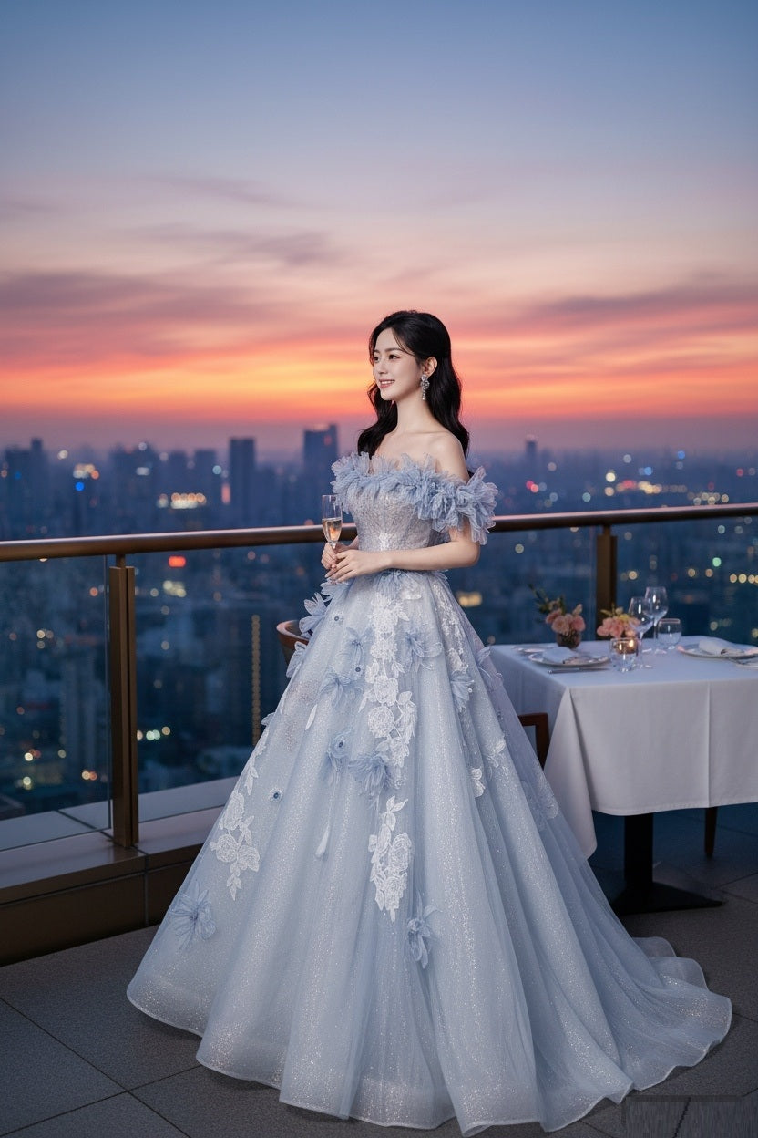 アルカドレスは、職人が一点一点真心を込めて丁寧に制作いたします。その想いは素材選びから縫製、装飾まで、すべての工程に宿ります。世界に一つだけの特別な一着を、ぜひご自身の目で、肌で感じてください。また、追加料金1,500円で、丈の長さ・胸囲・ウエストなど、お客様のサイズに合わせたオーダーメイドも承っております。