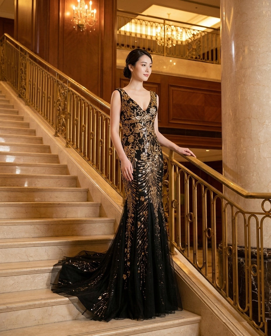 depreza マーメイドドレス ブルー/ブラック ゴールド/ブラック XS S M L XL XXL 即日発送 即納 結婚式 パーティードレス 体型カバー 小柄 ゆったり マタニティ ブラジャー 20代 30代 40代 50代 ブランド ワンピース シャンパン 夏 持ち運び