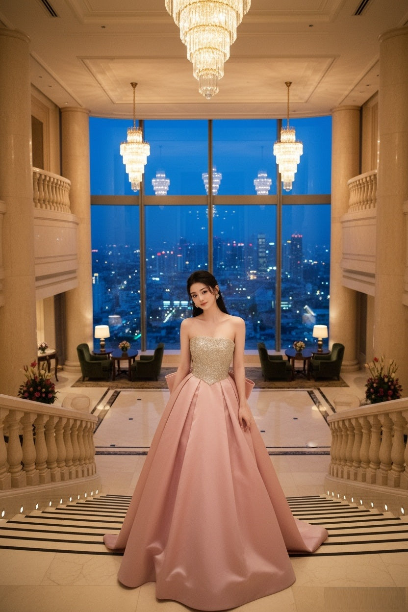 アルカドレスは、職人が一点一点真心を込めて丁寧に制作いたします。その想いは素材選びから縫製、装飾まで、すべての工程に宿ります。世界に一つだけの特別な一着を、ぜひご自身の目で、肌で感じてください。また、追加料金1,500円で、丈の長さ・胸囲・ウエストなど、お客様のサイズに合わせたオーダーメイドも承っております。