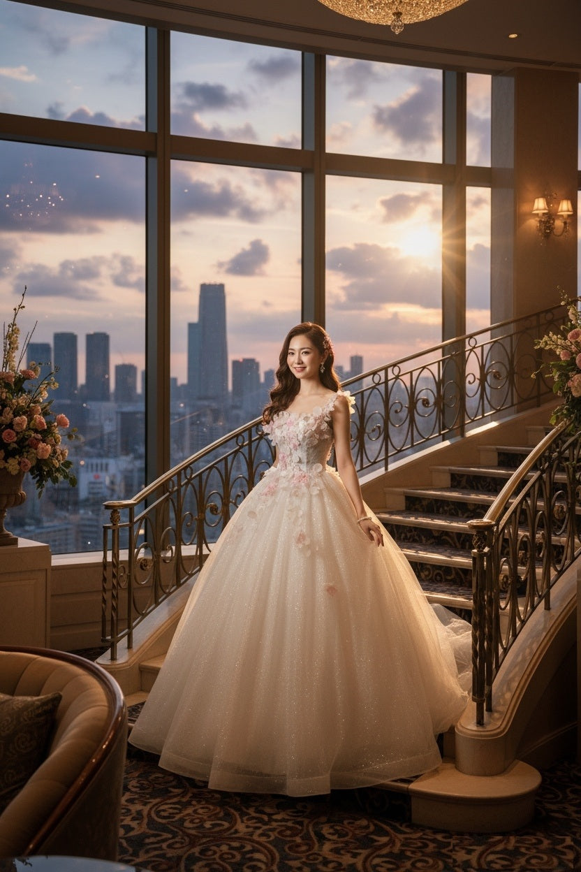 アルカドレスは、職人が一点一点真心を込めて丁寧に制作いたします。その想いは素材選びから縫製、装飾まで、すべての工程に宿ります。世界に一つだけの特別な一着を、ぜひご自身の目で、肌で感じてください。また、追加料金1,500円で、丈の長さ・胸囲・ウエストなど、お客様のサイズに合わせたオーダーメイドも承っております。