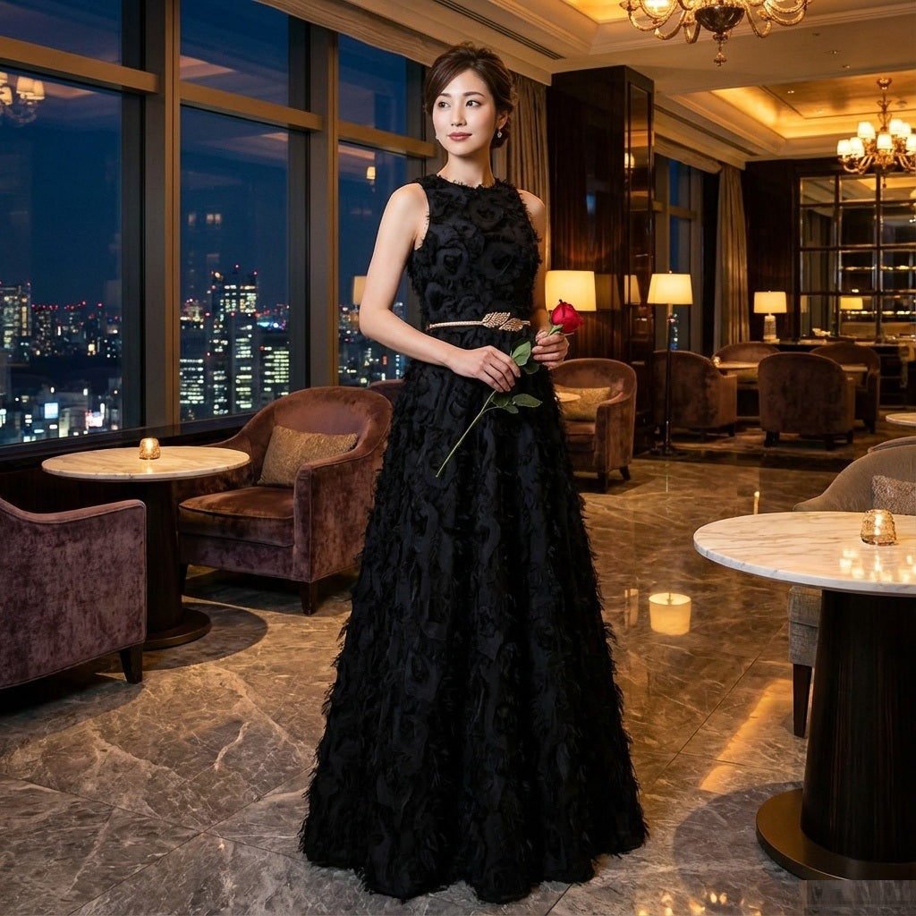 アルカドレスは、職人が一点一点真心を込めて丁寧に制作いたします。その想いは素材選びから縫製、装飾まで、すべての工程に宿ります。世界に一つだけの特別な一着を、ぜひご自身の目で、肌で感じてください。また、追加料金1,500円で、丈の長さ・胸囲・ウエストなど、お客様のサイズに合わせたオーダーメイドも承っております。