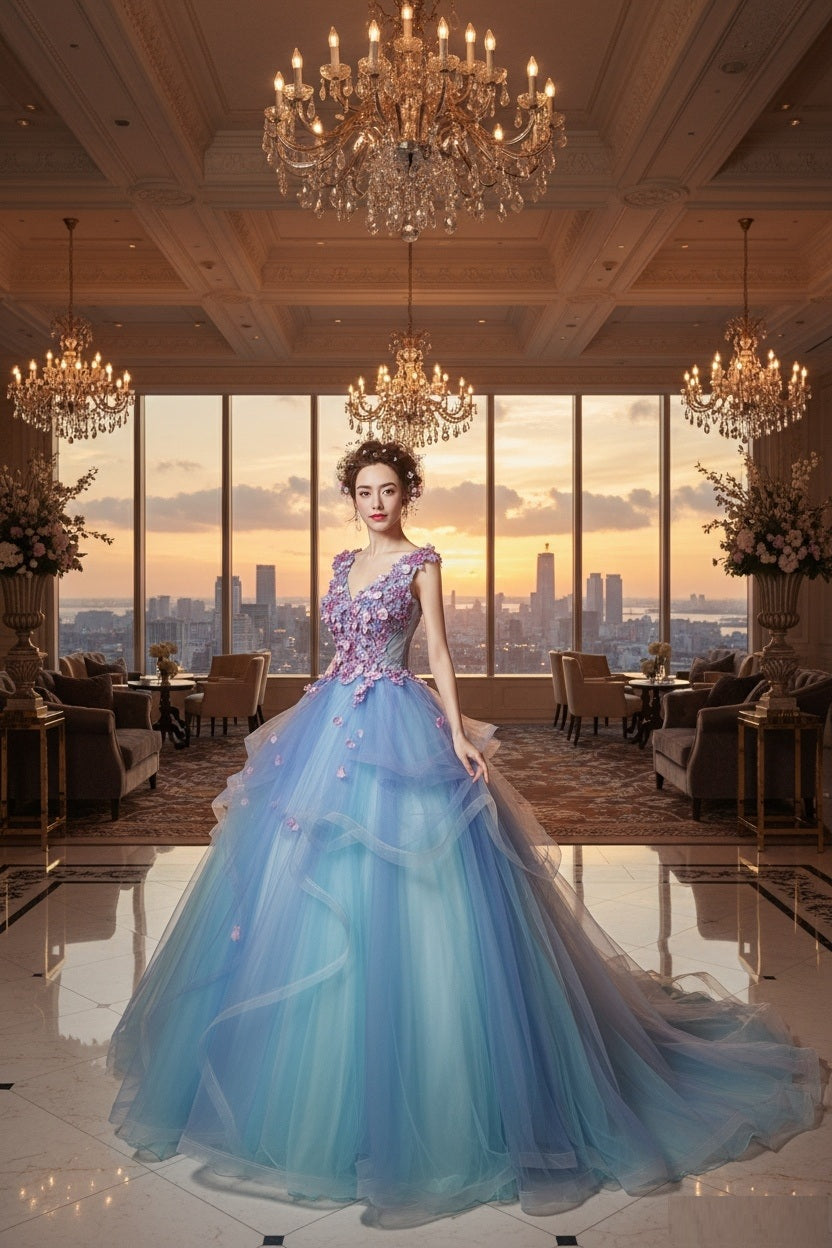 アルカドレスは、職人が一点一点真心を込めて丁寧に制作いたします。その想いは素材選びから縫製、装飾まで、すべての工程に宿ります。世界に一つだけの特別な一着を、ぜひご自身の目で、肌で感じてください。また、追加料金1,500円で、丈の長さ・胸囲・ウエストなど、お客様のサイズに合わせたオーダーメイドも承っております。