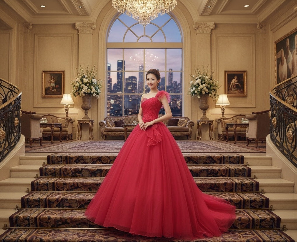 アルカドレスは、職人が一点一点真心を込めて丁寧に制作いたします。その想いは素材選びから縫製、装飾まで、すべての工程に宿ります。世界に一つだけの特別な一着を、ぜひご自身の目で、肌で感じてください。また、追加料金1,500円で、丈の長さ・胸囲・ウエストなど、お客様のサイズに合わせたオーダーメイドも承っております。