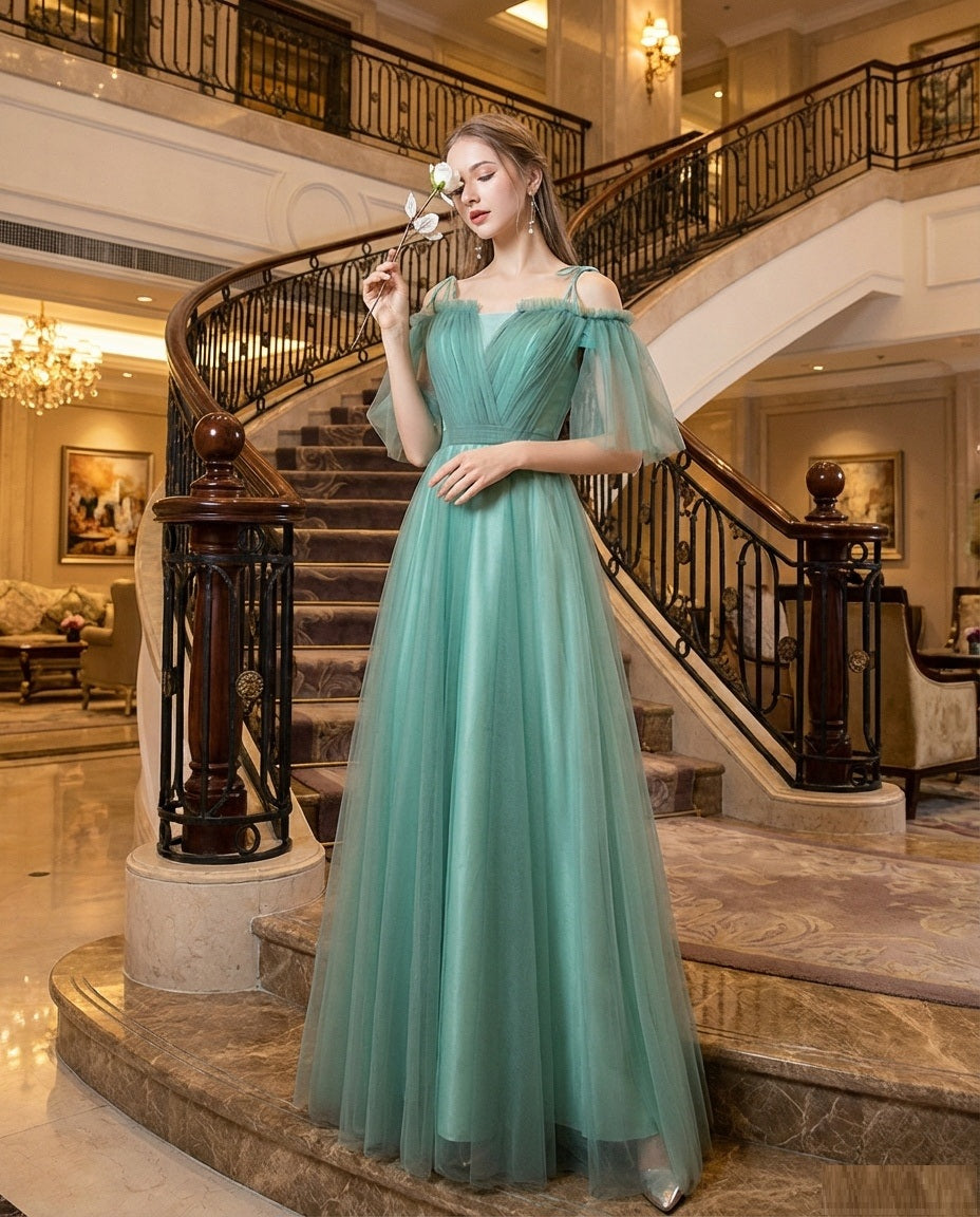 3-3244 ロングドレス (着丈 サイズオーダー可能) オーダーメイド Aラインドレス ノースリーブドレス フォーマルドレス 演奏会ドレス パーティードレス 結婚式ドレス 二次会 上品 高級感 透明感 シフォン素材 揺れ感 縦ライン 美シルエット ホテル空間 夜景 照明映え 大人女性 気品 静かな美しさ 特別な一日 主役級 写真映え 楽天人気 (グリーン)XS S M L XL XXL XXXL