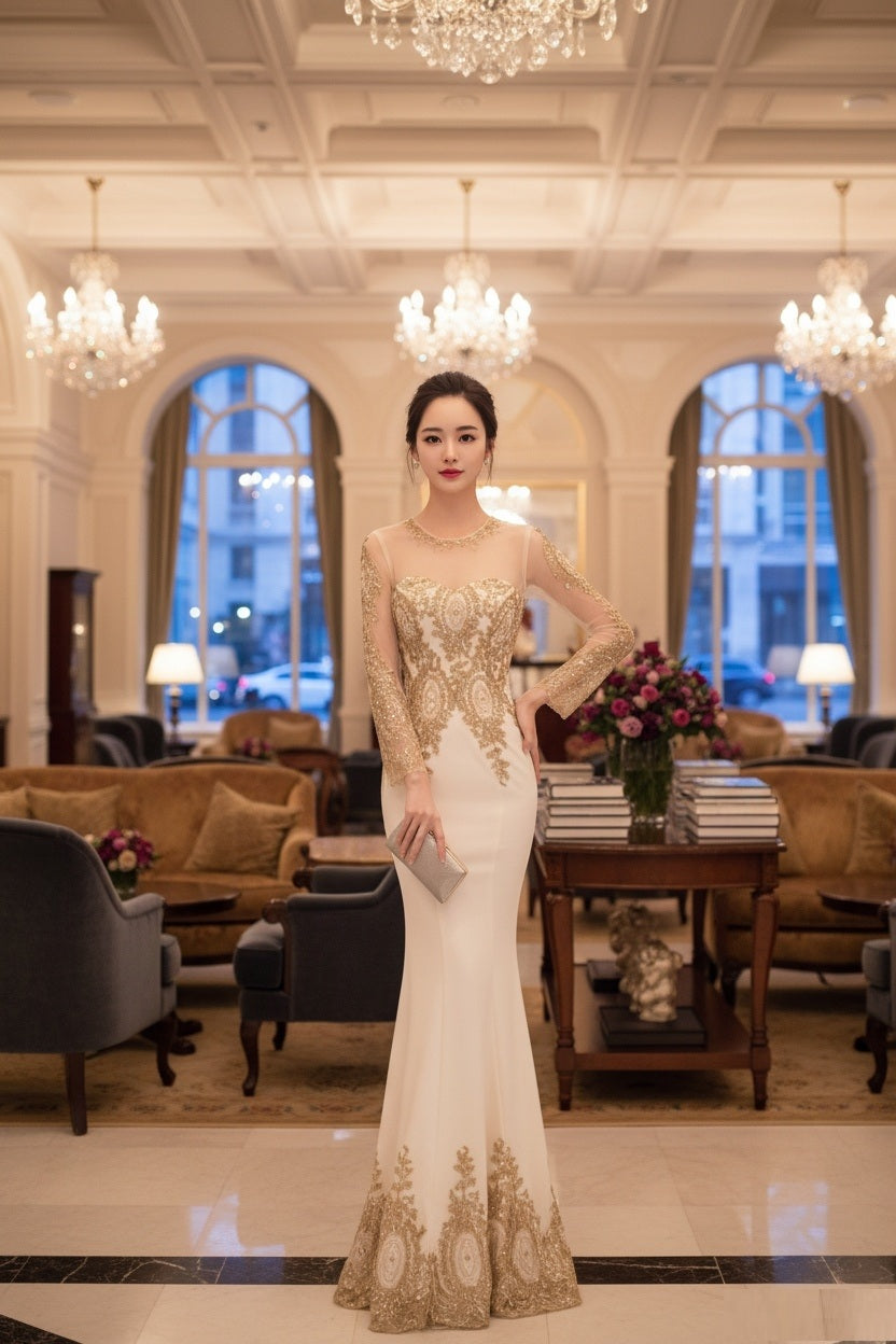 アルカドレスは、職人が一点一点真心を込めて丁寧に制作いたします。その想いは素材選びから縫製、装飾まで、すべての工程に宿ります。世界に一つだけの特別な一着を、ぜひご自身の目で、肌で感じてください。また、追加料金1,500円で、丈の長さ・胸囲・ウエストなど、お客様のサイズに合わせたオーダーメイドも承っております。