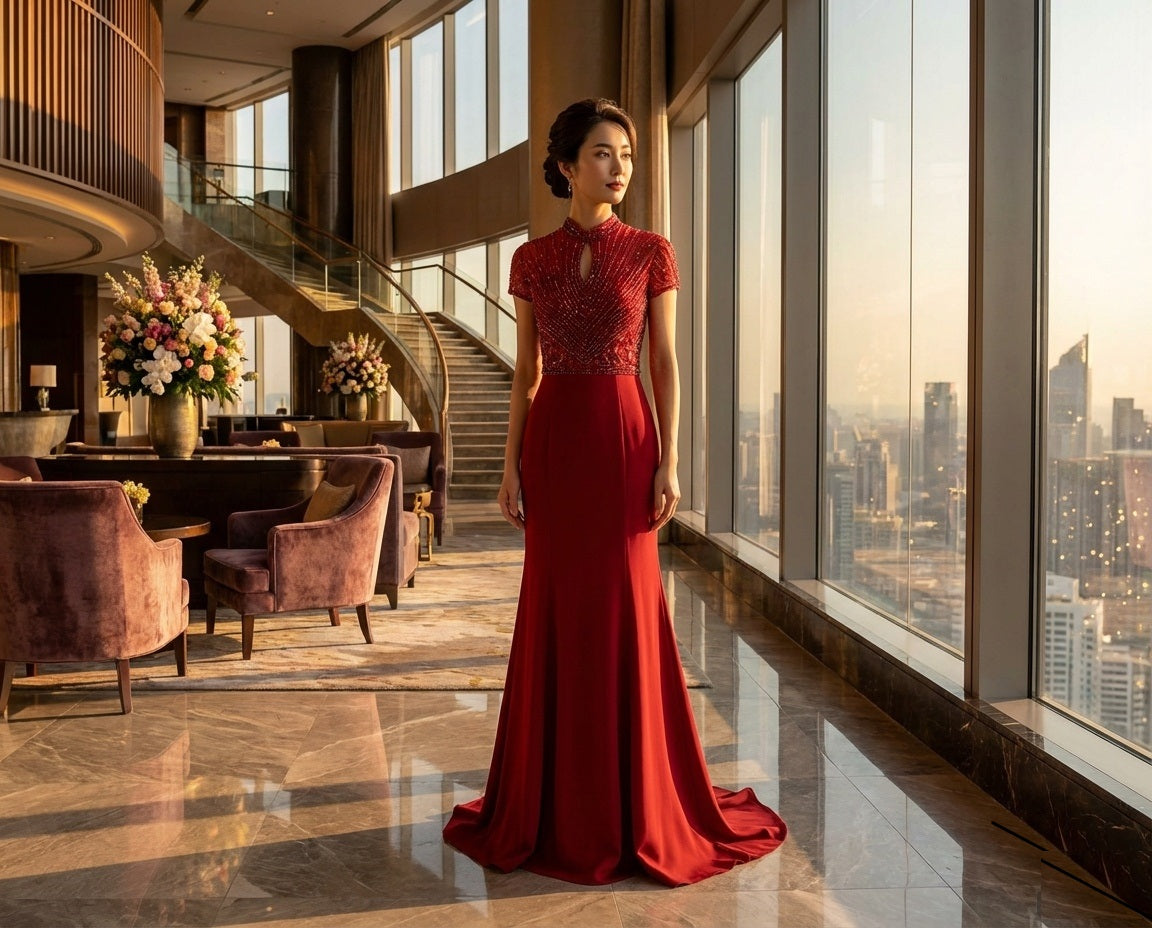 アルカドレスは、職人が一点一点真心を込めて丁寧に制作いたします。その想いは素材選びから縫製、装飾まで、すべての工程に宿ります。世界に一つだけの特別な一着を、ぜひご自身の目で、肌で感じてください。また、追加料金1,500円で、丈の長さ・胸囲・ウエストなど、お客様のサイズに合わせたオーダーメイドも承っております。