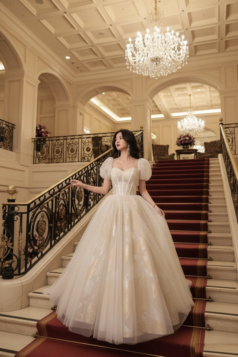 アルカドレスは、職人が一点一点真心を込めて丁寧に制作いたします。その想いは素材選びから縫製、装飾まで、すべての工程に宿ります。世界に一つだけの特別な一着を、ぜひご自身の目で、肌で感じてください。また、追加料金1,500円で、丈の長さ・胸囲・ウエストなど、お客様のサイズに合わせたオーダーメイドも承っております。