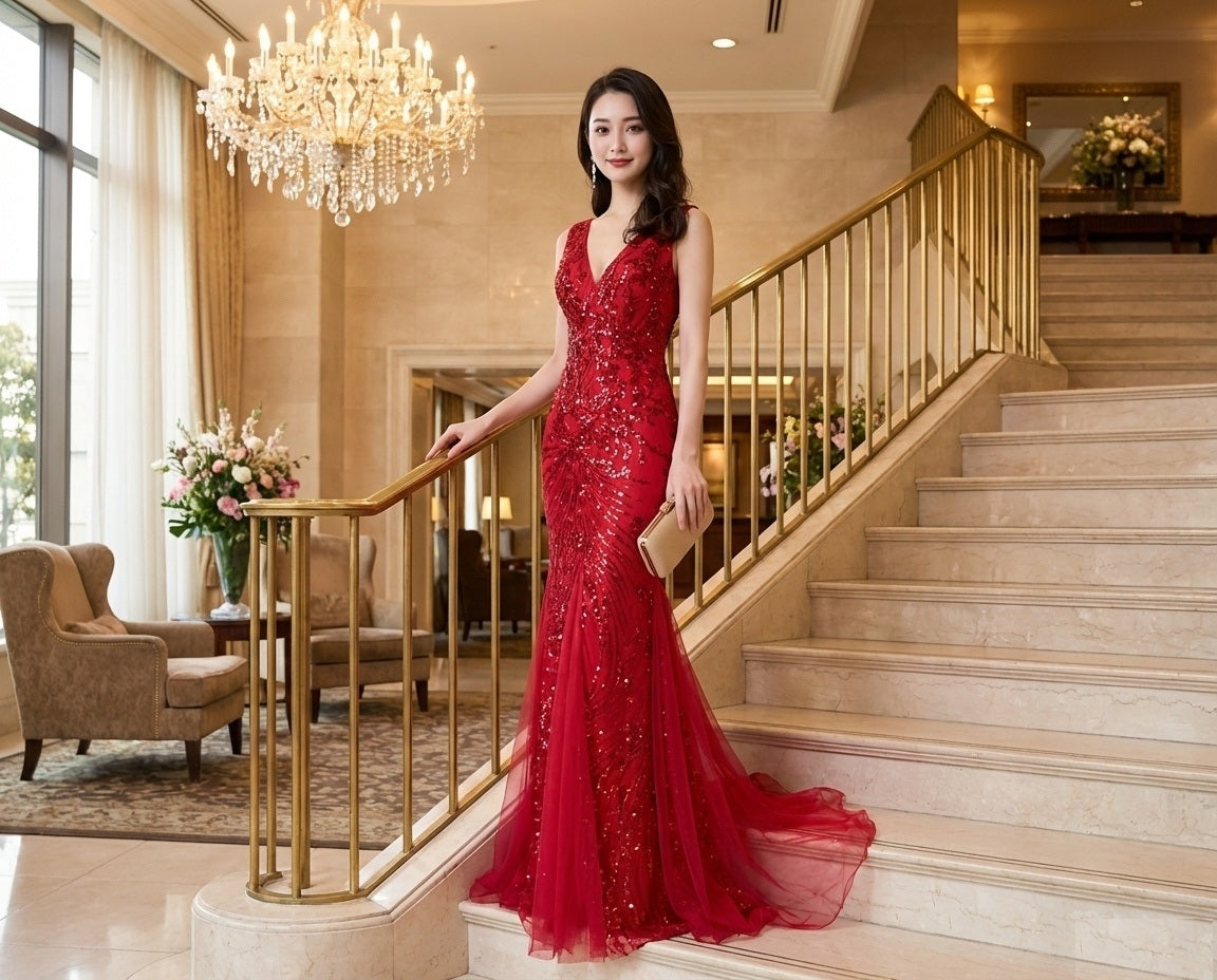 eleonoora マーメイドドレス ビジュープレミアム ロングエレガンス オーダーメイド (レッド)