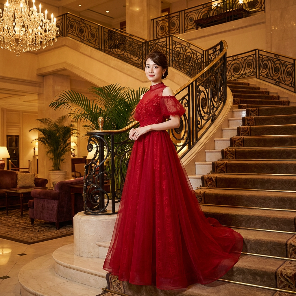 アルカドレスは、職人が一点一点真心を込めて丁寧に制作いたします。その想いは素材選びから縫製、装飾まで、すべての工程に宿ります。世界に一つだけの特別な一着を、ぜひご自身の目で、肌で感じてください。また、追加料金1,500円で、丈の長さ・胸囲・ウエストなど、お客様のサイズに合わせたオーダーメイドも承っております。