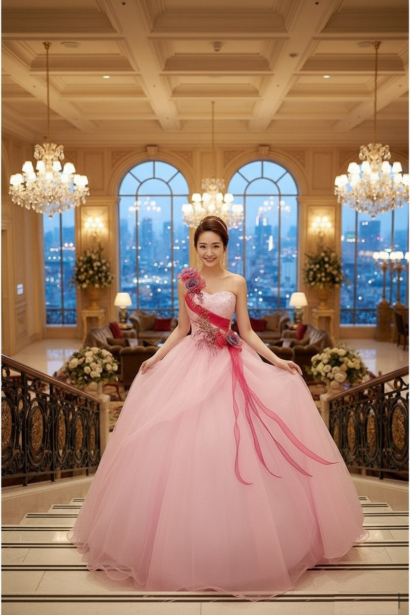 アルカドレスは、職人が一点一点真心を込めて丁寧に制作いたします。その想いは素材選びから縫製、装飾まで、すべての工程に宿ります。世界に一つだけの特別な一着を、ぜひご自身の目で、肌で感じてください。また、追加料金1,500円で、丈の長さ・胸囲・ウエストなど、お客様のサイズに合わせたオーダーメイドも承っております。