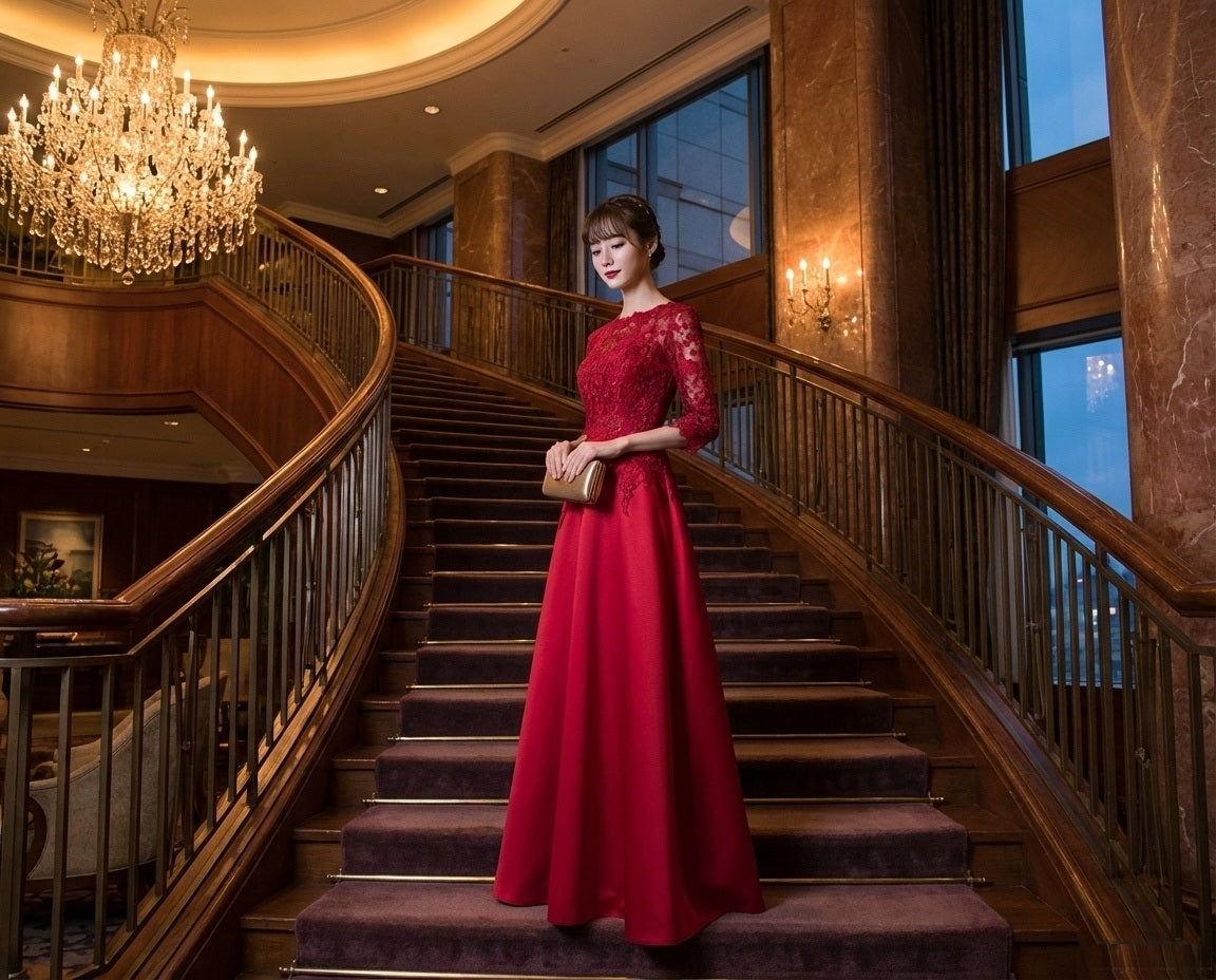 アルカドレスは、職人が一点一点真心を込めて丁寧に制作いたします。その想いは素材選びから縫製、装飾まで、すべての工程に宿ります。世界に一つだけの特別な一着を、ぜひご自身の目で、肌で感じてください。また、追加料金1,500円で、丈の長さ・胸囲・ウエストなど、お客様のサイズに合わせたオーダーメイドも承っております。