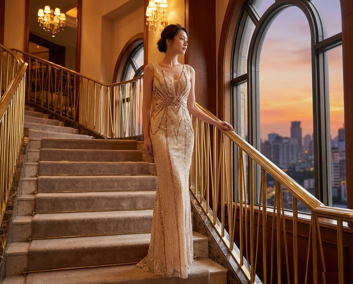 アルカドレスは、職人が一点一点真心を込めて丁寧に制作いたします。その想いは素材選びから縫製、装飾まで、すべての工程に宿ります。世界に一つだけの特別な一着を、ぜひご自身の目で、肌で感じてください。また、追加料金1,500円で、丈の長さ・胸囲・ウエストなど、お客様のサイズに合わせたオーダーメイドも承っております。
