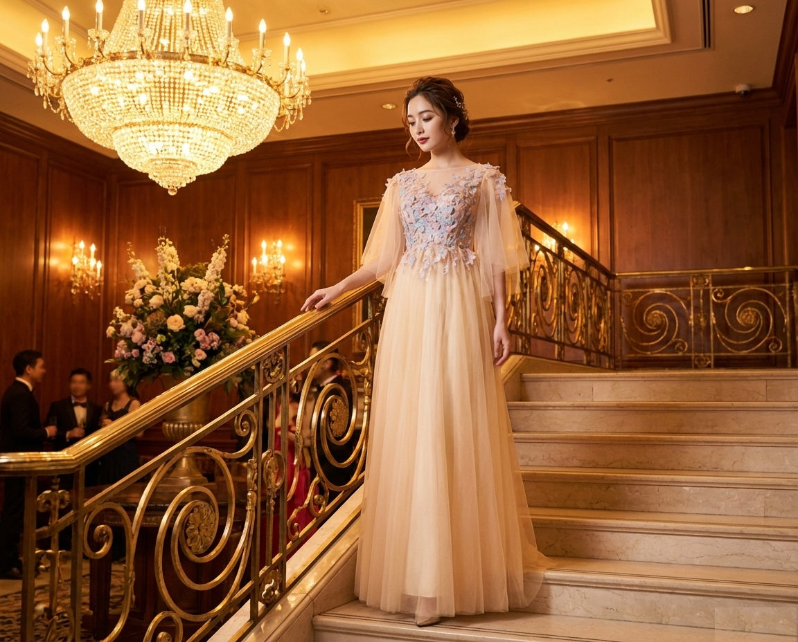 アルカドレスは、職人が一点一点真心を込めて丁寧に制作いたします。その想いは素材選びから縫製、装飾まで、すべての工程に宿ります。世界に一つだけの特別な一着を、ぜひご自身の目で、肌で感じてください。また、追加料金1,500円で、丈の長さ・胸囲・ウエストなど、お客様のサイズに合わせたオーダーメイドも承っております。