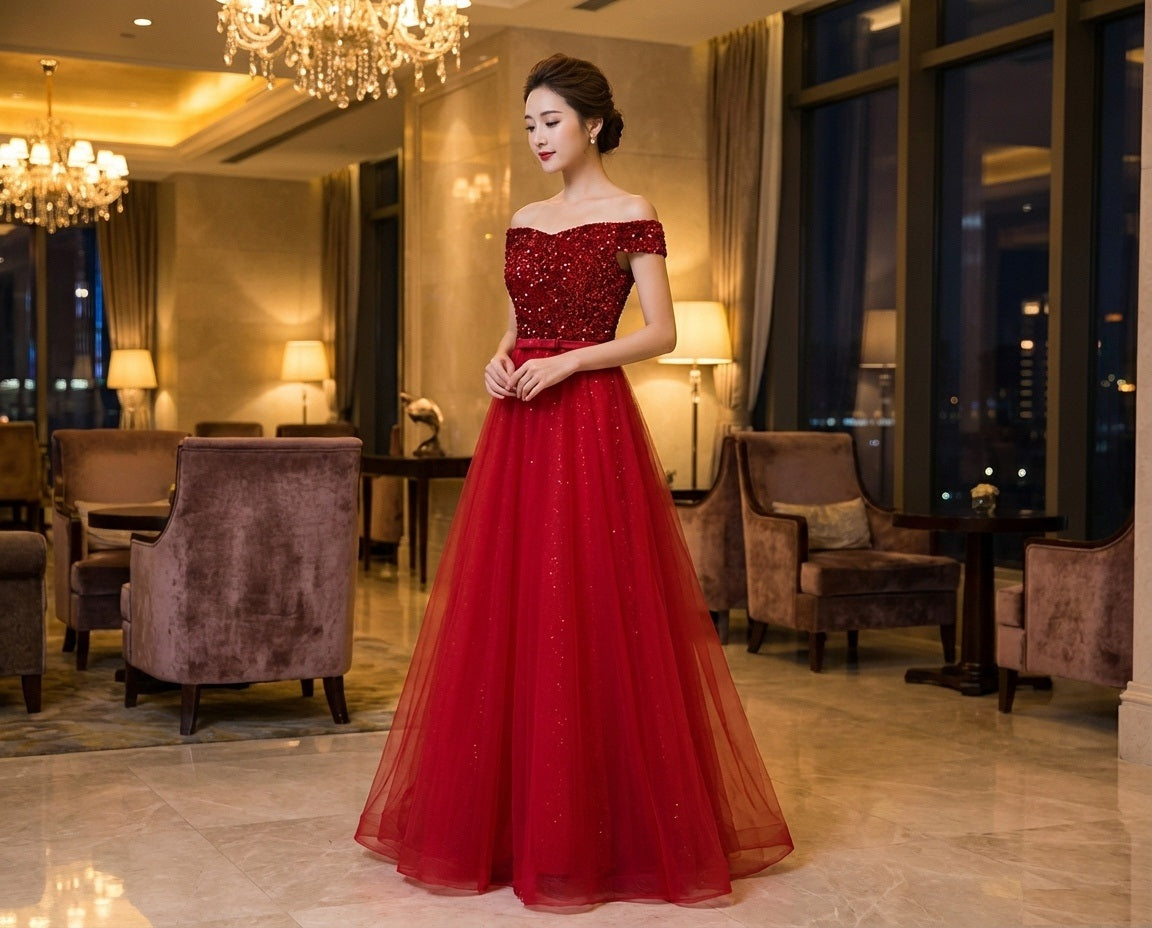 n3000 オーダーメイド (着丈 サイズオーダー可能) ロングドレス Aラインドレス ノースリーブドレス チュールドレス サテンドレス フォーマルドレス 高級ドレス 上質素材 透明感 気品 華やぎ 大人女性 美シルエット 体型補整 ホテルパーティー シャンデリア 夜景 映える装い 結婚式 二次会 演奏会 特別な夜 ラグジュアリー (レッド)XS S M L XL XXL XXXL
