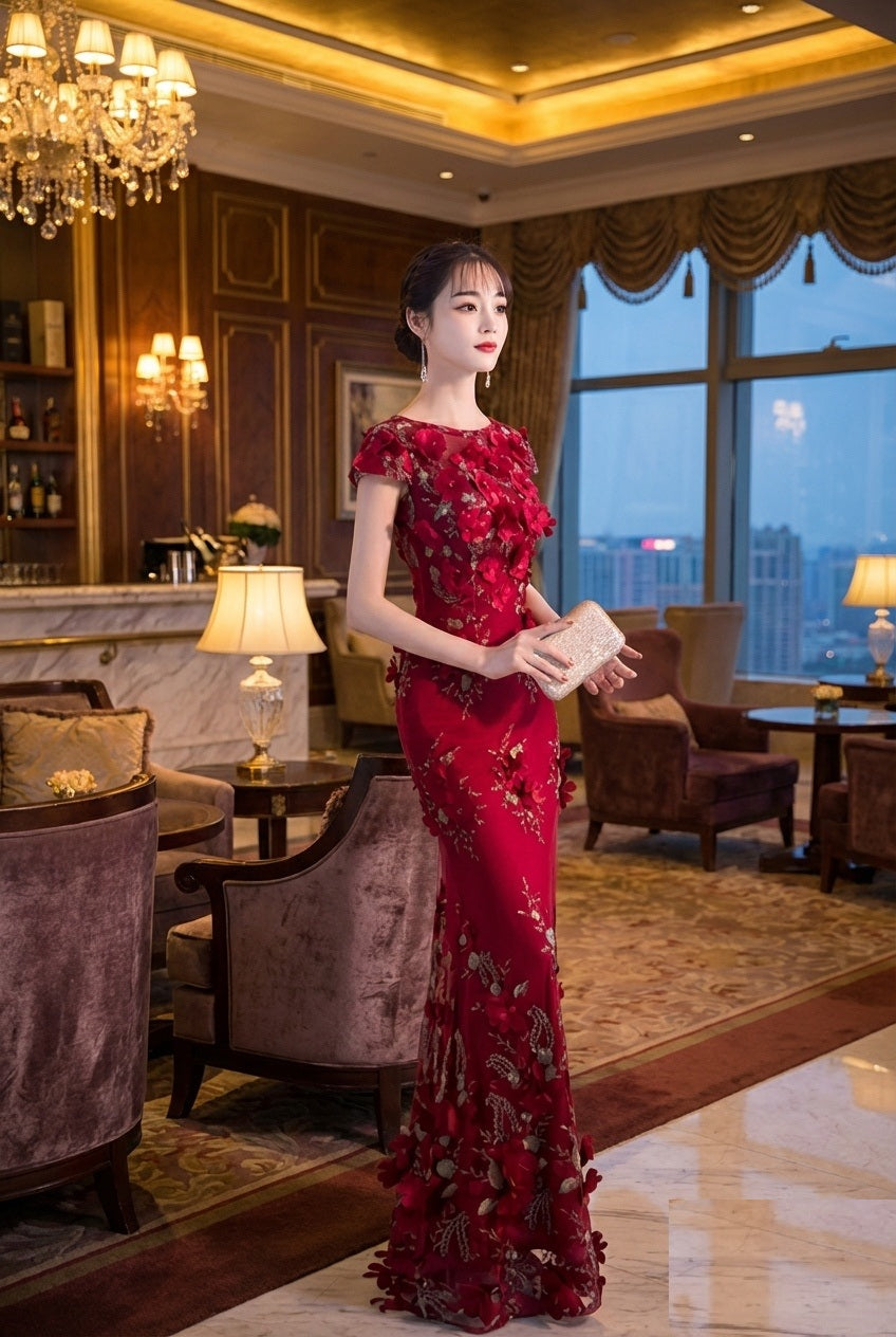 Sophia (着丈 サイズオーダー可能) マーメイドドレス オーダーメイド ロングドレス スリットドレス ノースリーブドレス レッドドレス ビジュードレス スパンコールドレス 上質サテン 微光沢 体型補整 美シルエット ホテルラウンジ 夜景 間接照明 気品 色気 主役級 ラグジュアリー フォーマル 結婚式 演奏会 パーティー 特別な夜 (レッド)XS S M L XL XXL XXXL